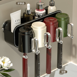 吸盘牙刷置物架免打孔漱口杯刷牙杯卫生间壁挂式家庭电动牙膏架子
